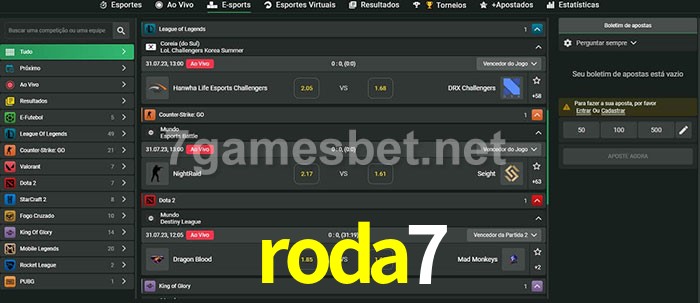 A aposta roda7 oferece aos jogadores a experiência mais conveniente de apostas em eSports!